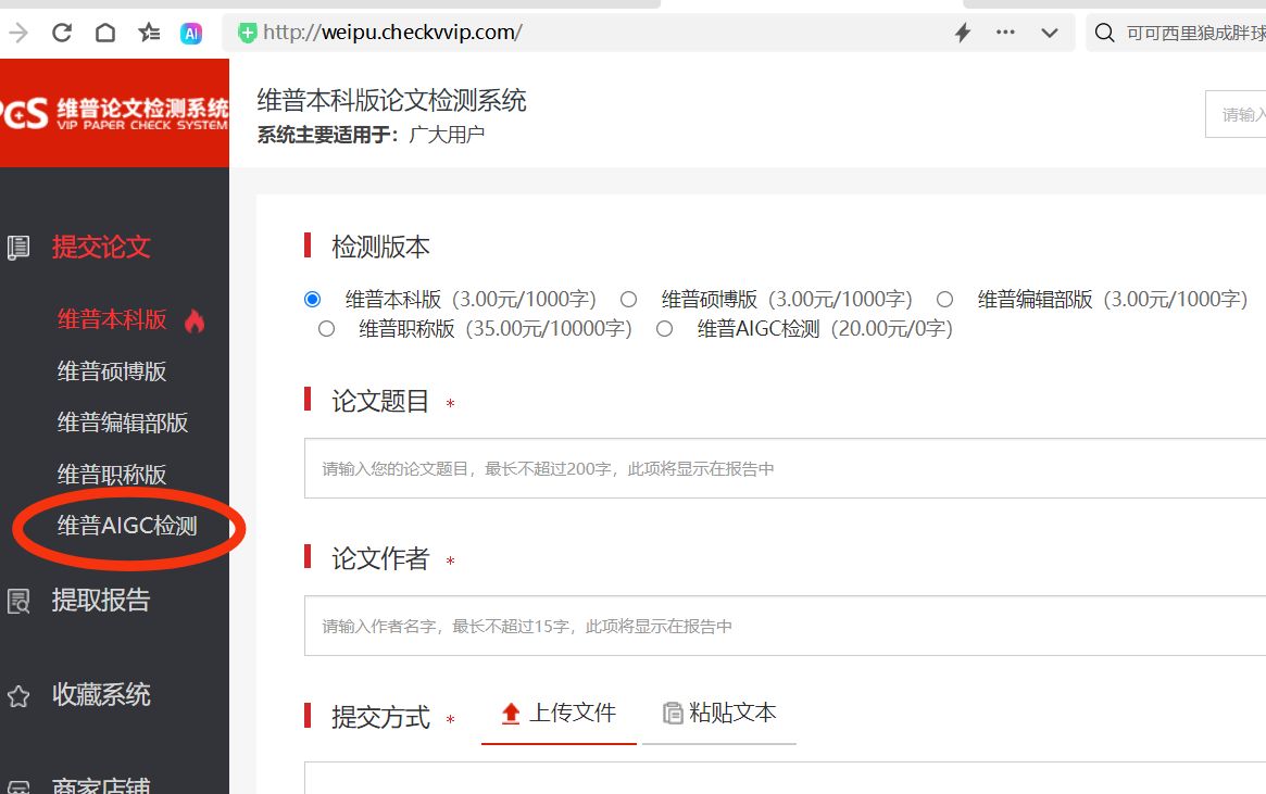 和Turnitin只检测英文不同,维普的AIGC检测功能只能检测中文,收费是20元每篇,如果你是通过维普代理网站检测,要注意收费是否合理。