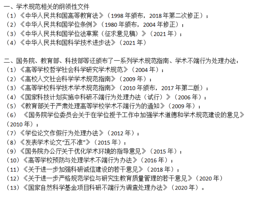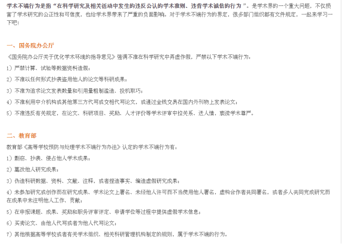 国家及学术相关部门对学术不端行为都有明确的规定,也出台了一些列的规章制度预防学术不端行为的发生。