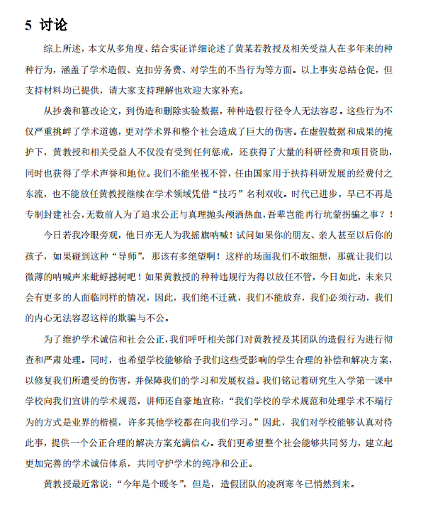 如举报材料真实,黄某的确存在严重的学术不端行为,从125页的举报材料也可以看出,学生们不堪欺压,也做了很多工作。这样无视学术道德规范的行为,严重影响了学术公平、公正的原则,也欺骗了大众。